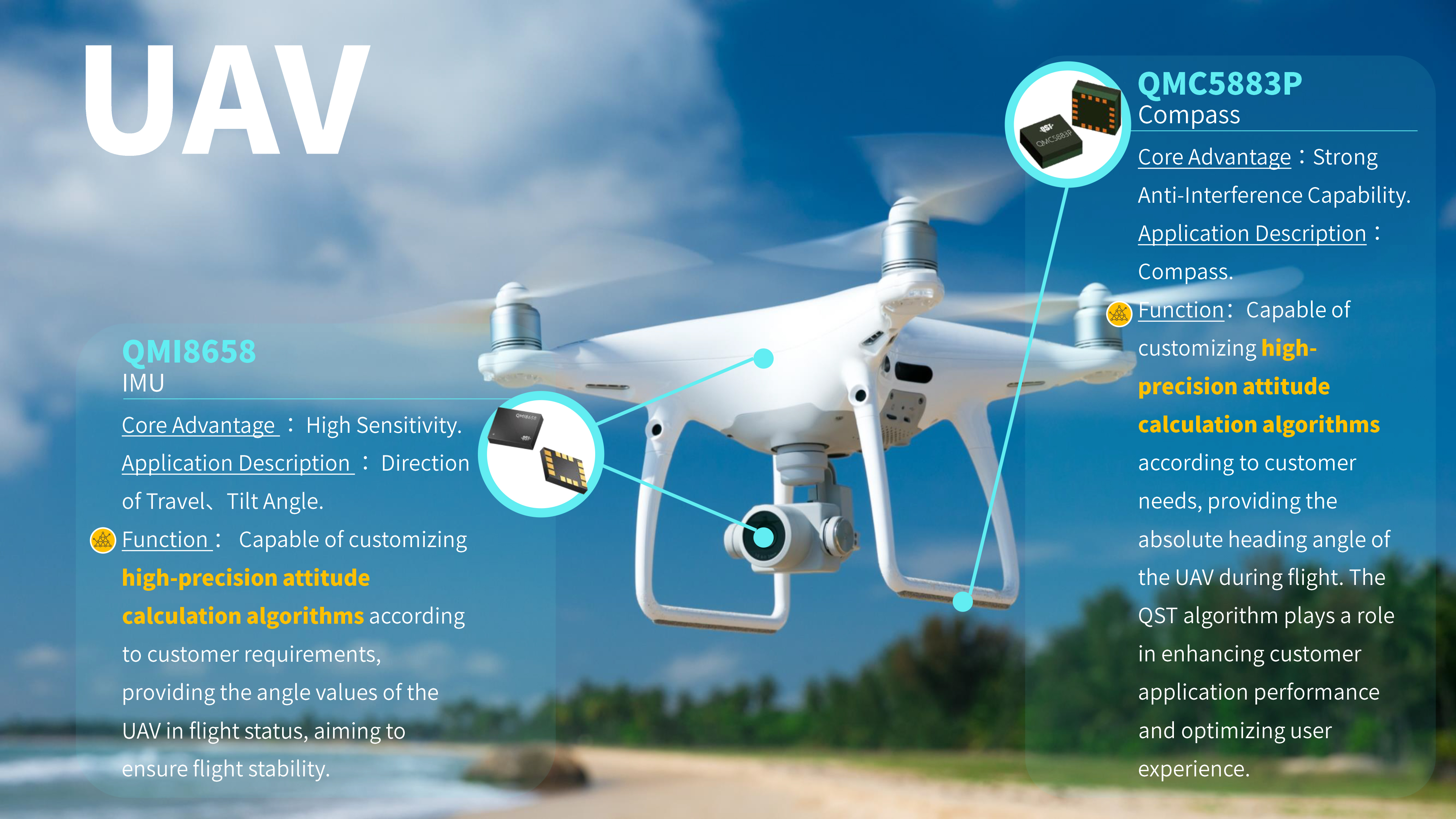Capable of customizing high-precision attitude calculation algorithms according to customer needs, providing the absolute heading angle of the UAV during flight. The QST algorithm plays a role in enhancing customer application performance and optimizing user experience.